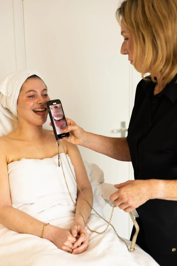We starten elke behandeling in mijn praktijk Beautysalon Delejo met een uitgebreide intake. Tijdens de intake kijk ik naar je huid, voer ik een huidmeting uit met de hannah Skin Analyzer én gebruik ik het diagnosemodel van de tonganalyse. Dit model is een mix tussen huid-, gelaats- en tongdiagnostiek. De tong geeft een bevestiging van de oorzaak van huidproblemen die aan de buitenkant zichtbaar zijn. Immers, de huidconditie is een directe afspiegeling van het inwendige lichaam. De tong laat precies zien hoe het ervoor staat met de weerstand en vitaliteit van jouw inwendige systeem. Ook je mentale en emotionele gemoedstoestand en de werking van je organen (fysiologische processen) zijn zichtbaar op je tong.